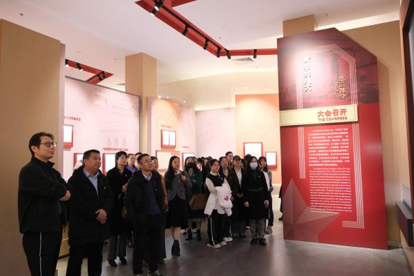 随后,大家参观了“中国共产党第八次全国代表大会历史陈列”展。展览分为“大会准备”、“大会召开”和“大会意义和影响”三个部分,全景式展现了中国共产党全面执政后,将工作重心逐步转向发展生产力,积极探索适合国情的社会主义建设道路的伟大探索及其深远意义。大家通过一张张图片、一份份档案、一件件实物与历史对话,愈发感受到以毛泽东为代表的中国共产党人所开辟的社会主义建设道路的伟大卓著。