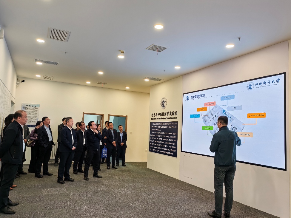 10月15日,山东财经大学党委书记查玉喜、校长洪俊杰等一行莅临太阳成tyc7111cc行为与神经经济学实验室参观交流,李国武院长、张红川副院长、杜晓鹏老师、李嘉琦老师负责接待。张红川副院长围绕实验室的建设背景与发展历程、仪器设备配置、学术研究成果以及管理制度四个方面,向来宾作了系统介绍。