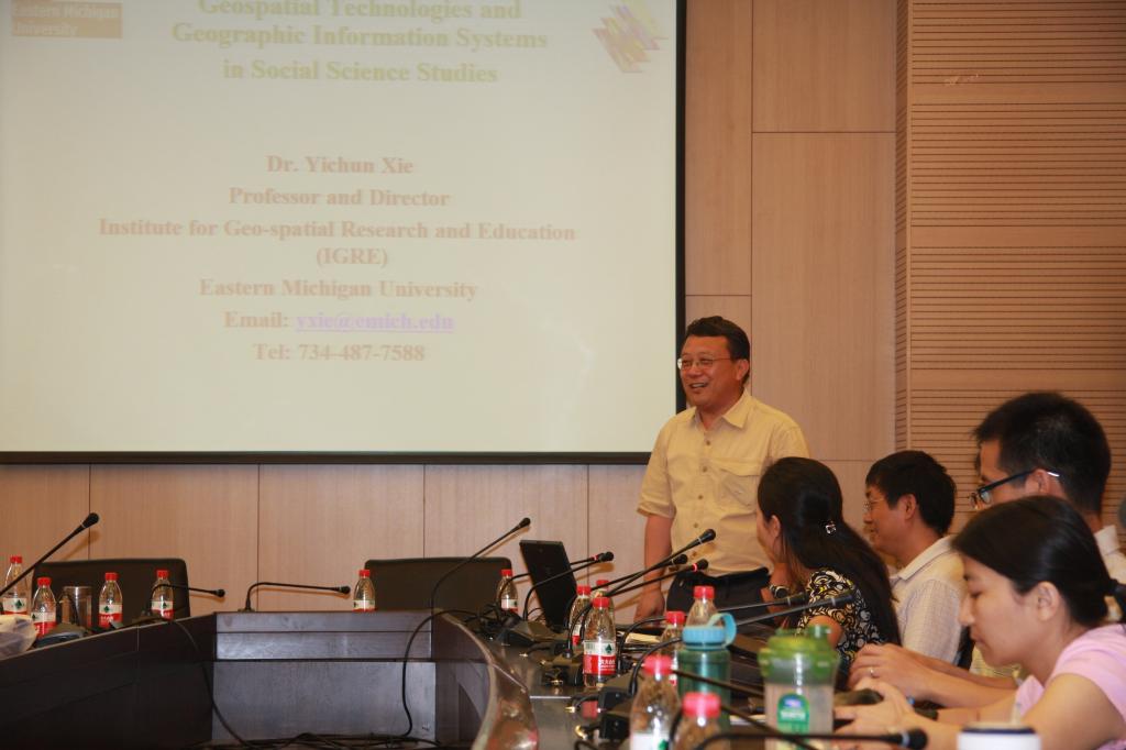 2012年6月6日下午,应社会发展学院邀请,美国东密歇根大学地理与地质学系系主任谢宜春教授来我校做了一场题为“地理信息系统(GIS)在社会科学研究领域中的应用”的学术报告。报告会由社会发展学院副院长高霖宇主持,社会发展学院教授王积超、副教授苏日嘎拉图出席了报告会,报告会吸引了来自统计学院、经济学院和社会发展学院等院系的部分老师、博士生和研究生的积极参与。