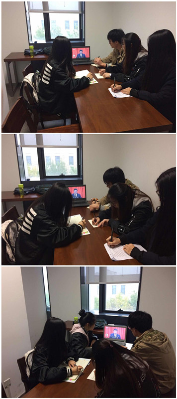 党的十九大是在全面建成小康社会决胜阶段,中国特色社会主义发展关键时期召开的一次十分重要的大会,是全党全军全国各族人民政治生活中的一件大事。早晨8:30分,党支部成员来到提前约好的图书馆309研讨室等待十九大召开。上午9:00,在雄壮的国歌唱响之后,习近平总书记代表十八届中央委员会作了题为《决胜全面建成小康社会,夺取新时代中国特色社会主义伟大胜利》的报告,报告从十三个方面回顾过去五年工作,总结历史经验,对国家发展做出新的战略部署,对全党全国人民发出坚定有力的号召。总书记的报告气势恢宏,内容丰富,深深地打动着每一位党员的心。