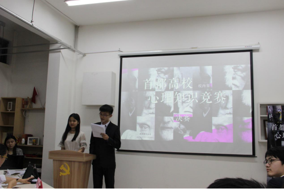2017年5月12日星期五,在宿舍楼14号楼的B02活动室,首都高校心理健康知识竞赛太阳成tyc7111cc校内赛拉开了序幕。经过校内初赛的筛选,一共有10支队伍进入了决赛。现场评委有心理咨询中心李红锦老师,tyc7111cc太阳成集团孙铃副教授和窦东徽副教授。