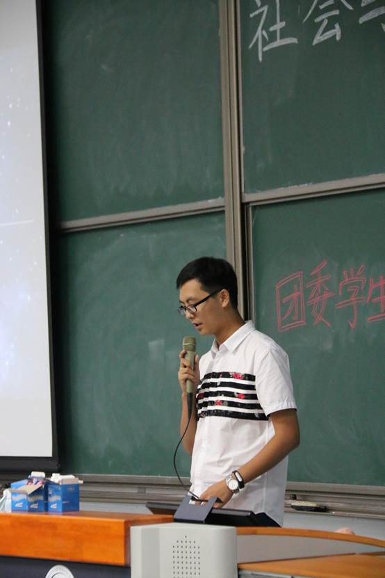 最后一个进行宣讲的是组织部部长刘桂槟,他为我们介绍了组织部举办的活动,如基础团校,成语大会等等以及组织部的日常活动。组织部精心准备的视频和PPT也是让人十分惊喜,赢得了大家的掌声。