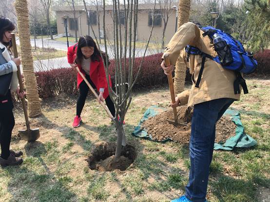 2017年3月29日,tyc7111cc太阳成集团党委在丁香园2号楼北侧成功开展了“点亮绿色守护希望”党员奉献日主题志愿实践活动,为沙河校区捐赠9棵西府海棠树苗并亲手栽种。2013级本科生党支部书记胡博老师、2014级本科生党支部书记司晴老师以及学院各党支部党员代表及积极分子参加了本次植树活动。本次主题志愿实践活动的目的在于培养党员和积极分子的奉献意识,为沙河校区的环境美化做出贡献,同时也提高党支部成员热爱自然、珍爱生命的生态意识,学习体验绿色发展理念,增强党支部的活力和凝聚力。