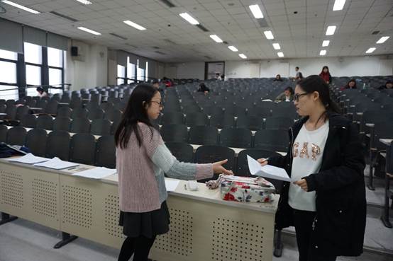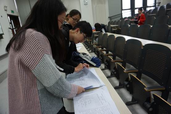 收卷时间到~监考员收起了所有同学的试卷,准备进行集中批改。秉持这认真负责的态度,大家都批改的非常仔细哦~对着答案一个一个认真核对、计算分数。为我们的阅卷同学点赞!
