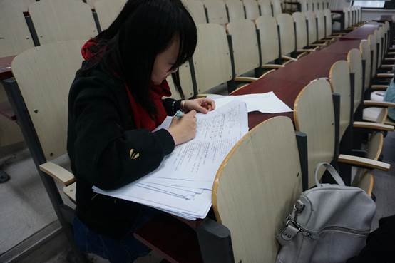 还有几位同学在认真的答题!虽然很多同学已经交卷离开了,但是这几位同学还是非常淡定的答题。认真的精神值得让人学习!