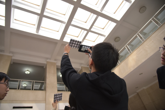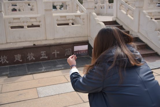 这次比赛共需要找到24个地点,这24个地点按照难度分为A,B,C三个等级,每个等级对应不同的分数。大家需在规定的一个小时内找到明信片上的地点,并按照相同的角度,采用拍照的方式,将精心制作的明信片,完美无瑕地融入到迷人的中财校园景观中。每个队伍都配备了一名跟队人员,提供照相设备并监督。他们从东边的教工之家到西边的操场看台,从南门的保安岗哨到北边校训石碑,把我们中财的校园跑了个遍。他们因拍到了合适的照片而欢呼雀跃,也因为意见不一致而发生过争执,这都是比赛的一部分。