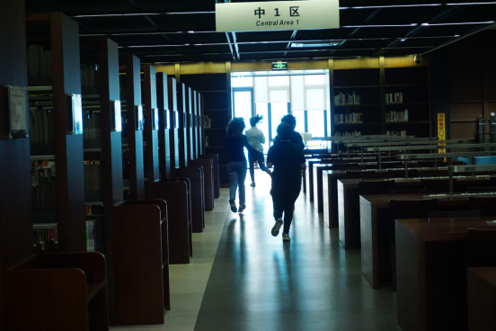 游戏开始的号角一吹响,参赛队伍立刻冲向电梯,争分夺秒,力图抢占先机。同学们在奔跑中对图书馆的构造更加熟悉,在游戏中体会找书乐趣。