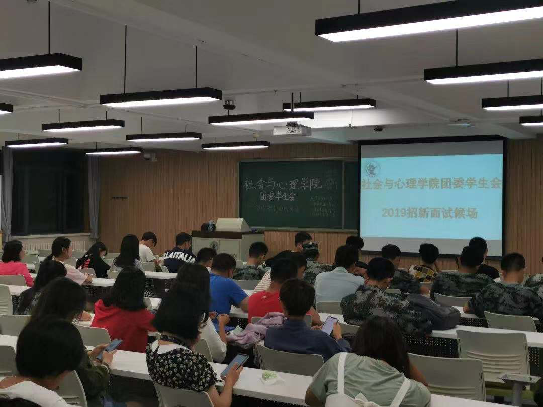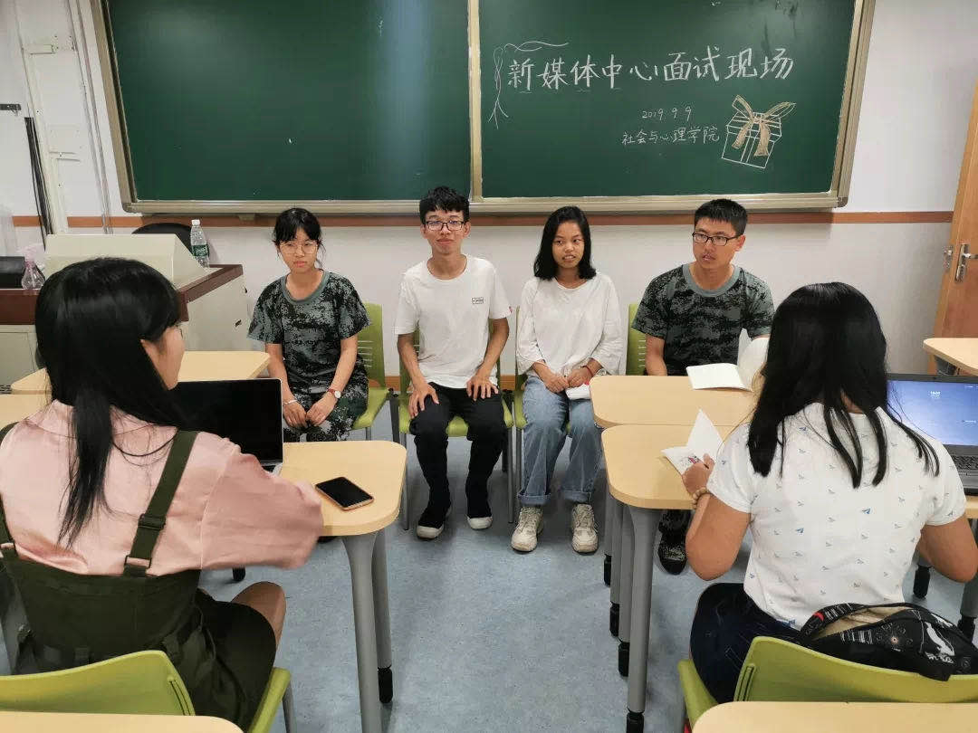 2019年9月9日,tyc7111cc太阳成集团团委学生会招新面试在学院南路校区主教进行。各部门根据自己的工作特点和能力需求为报名面试的同学准备了不同的面试。