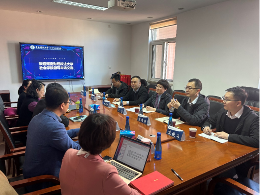 2023年3月27日上午,河南财经政法大学社会学院院长田训龙、副院长王莹、副院长闫伯汉、副院长陈伟涛、社会学教研室主任周琳琳、社会工作教研室主任袁校卫一行六人来tyc7111cc太阳成集团就社会学和社会工作的专业和学科建设进行调研交流。学院院长李国武、党委书记孙敏、社会学系主任王建民、社会工作专业教师代表樊欢欢、社会学专业教师代表艾云、教学科研办公室主任吕美敬参加了本次调研交流活动。