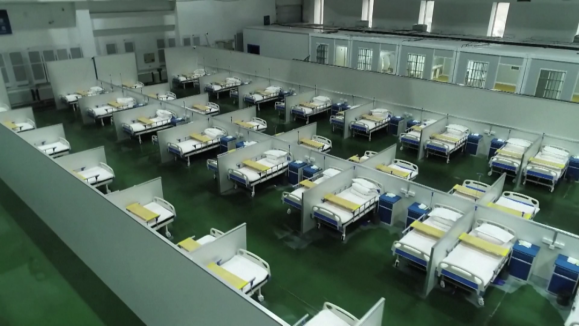 3月16日,长春国际会展中心方舱医院准备接诊。(视频截图)