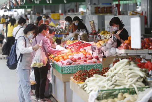 3月14日,深圳福田批发市场,市民手机扫码持24小时核酸证明进场买菜,市场货物充足物价平稳。(图片来源:人民视觉)